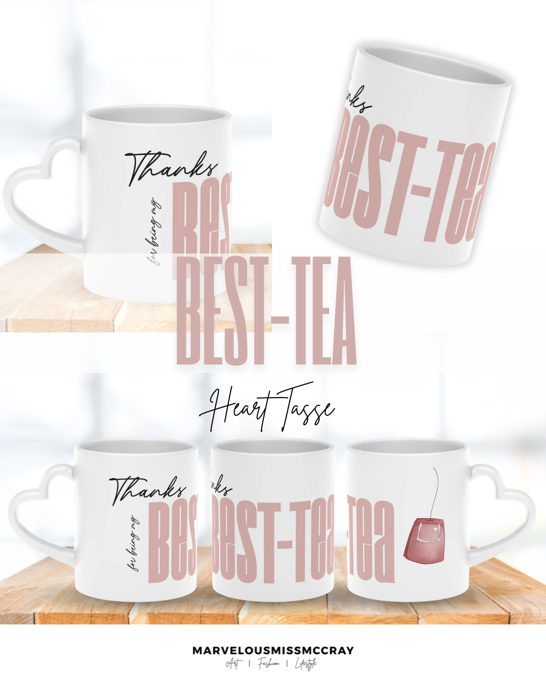 Best-Tea - handdesignte 11oz Keramiktasse mit herzförmigem Henkel